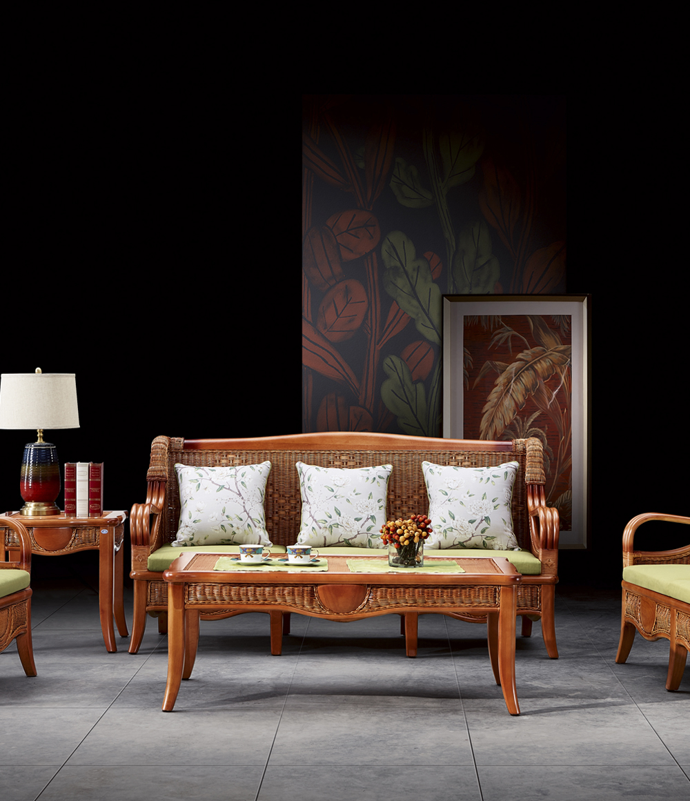 主材:歐洲進口櫸木+印尼進口藤條+布藝+玻璃